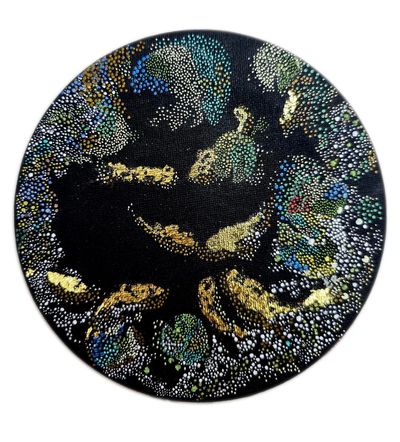 My artwork, *Drops of Joy*, is created through the pointillism technique, with golden koi fish swimming gracefully across the canvas, symbolizing that each individual can contribute their efforts toward a greater cause. Every dot represents our participation, and when these small efforts combine, they form a powerful force for change. This piece calls on the audience to recognize the importance of clean water and its profound impact on the lives of underprivileged children. I hope that as viewers appreciate this artwork, they can feel the urgent need and hope embedded within it, and be inspired to take action toward improving the lives of these children.